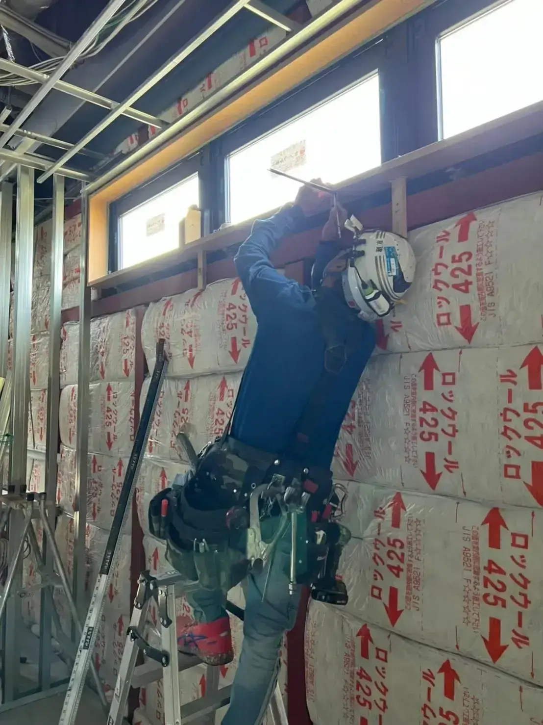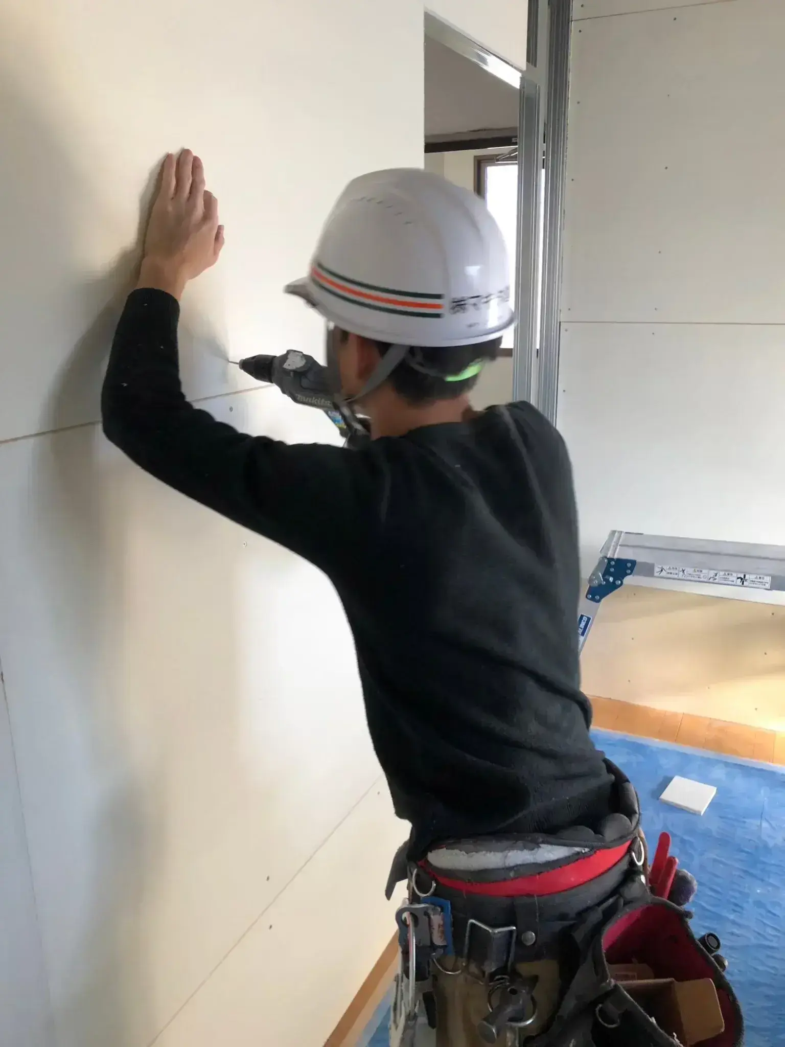軽天屋として建物内部の内装工事を主に手掛けています。軽鉄材という資材を主に使用し、壁や天井、間仕切りの下地や骨組みを組み立て、その後ボード張りの施工を行います。